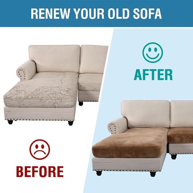 - UPGRADED THICKER: Each individual cushion cover fits up to 19.6-29 inch width, 21.6-30.5 inch depth, 3-8 inch thickness while the chaise cover fits up to 32-38 inch width, 54-62 inch depth, 3-8 inch thickness. Feature one-size-fits-most, kindly measure before ordering