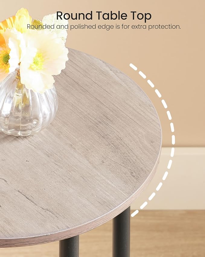 - Selected Materials: The round side table is made of premium particleboard and durable metal. Its top is smooth and easy to clean, with rounded and polished edges for a delicate touch. The sturdy metal legs come with adjustable feet for extra stability