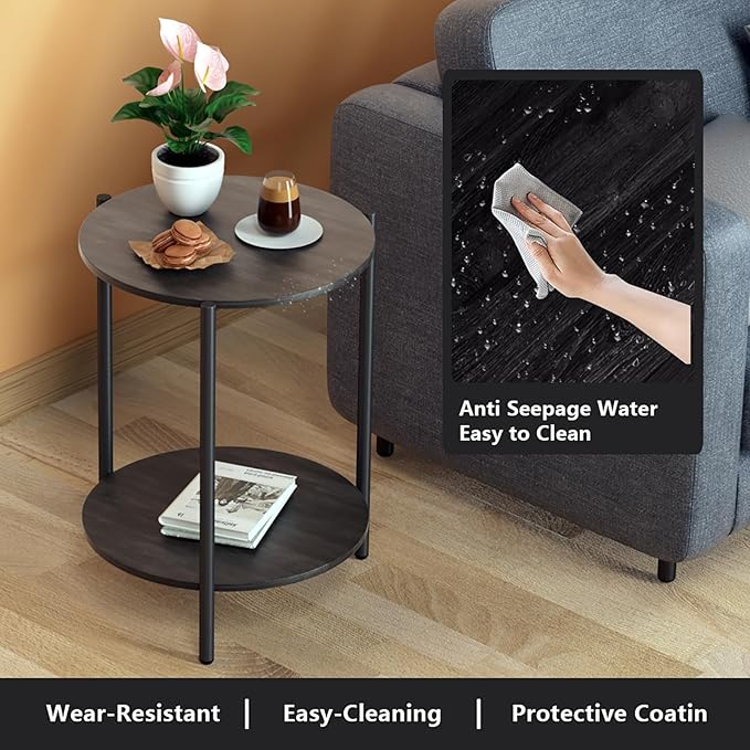- 【2-Tier Storage】Kasrikly round side table 2-tier open design, perfect for storing books, magazines, and decorative items. The small table measures 15.75"D*21.46"H and has a total weight capacity of up to 40 lbs.