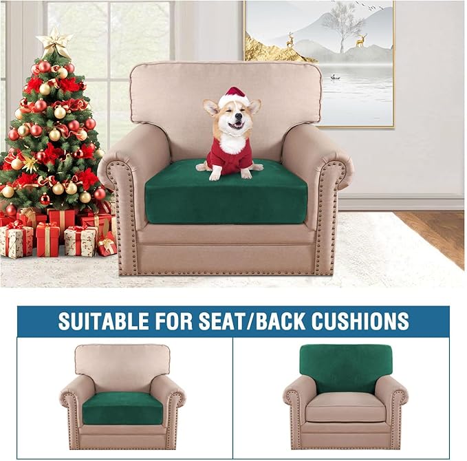 H.VERSAILTEX Velvet Stretch Couch Cushion Cover Plush Cushion Slipcover for Chair Cushion Furniture Protector Seat Cushion for Sofa Cover (1 Piece Armchair Cushion Covers, Vintage Green)
