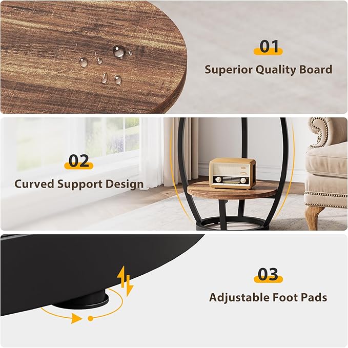 - Space-Saving with Storage: Designed with 2 open tiers, this small side table keeps drinks, books, or décor within reach. Its round & compact shape fits beside a sofa, bed, or chair, making it ideal for small spaces and cozy corners