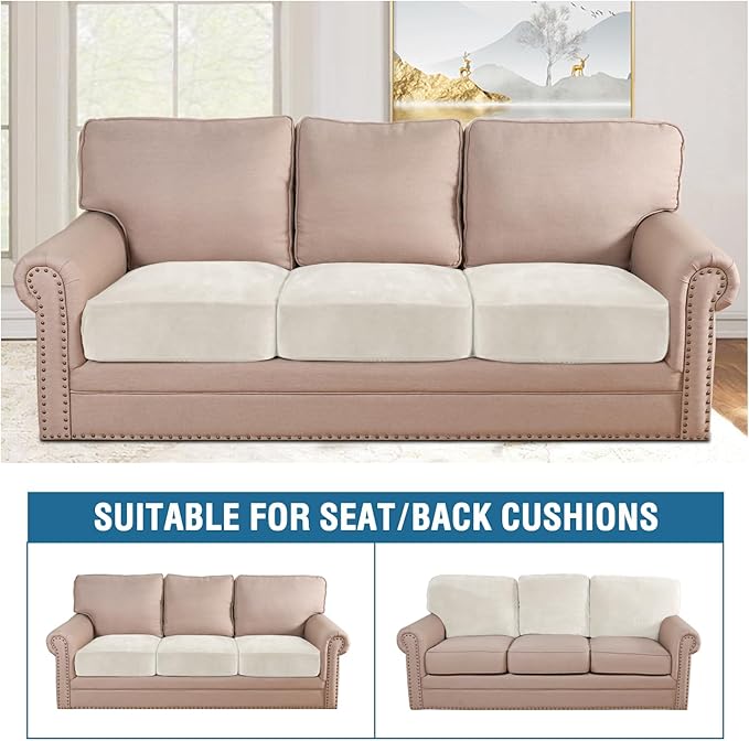 H.VERSAILTEX Velvet Stretch Couch Cushion Cover Plush Cushion Slipcover for Chair Loveseat Sofa Cushion Furniture Protector Seat Cushion Sofa Cover (3 Piece Sofa Cushion Covers, Porcelain)