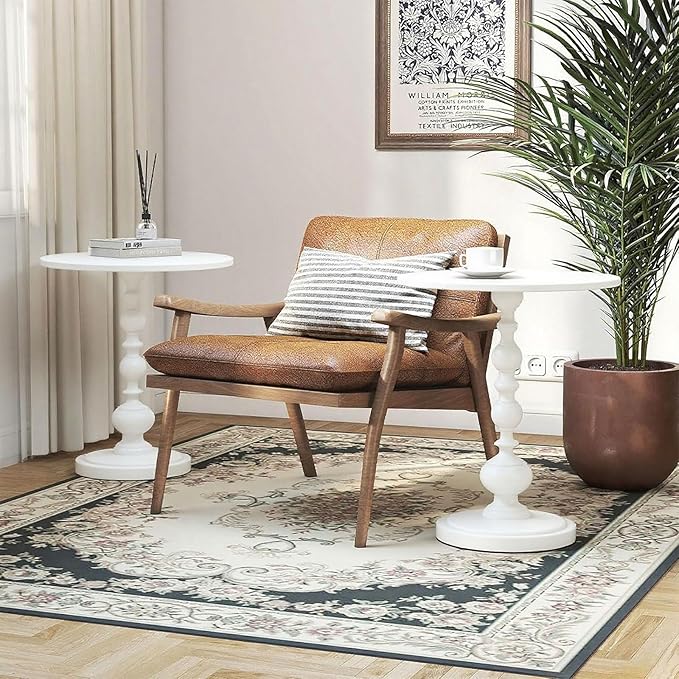 - 【Retro scientific design】The white side table, featuring a matte minimalist outline and classical column design, can be fashionably integrated into your home decoration. A round desktop can prevent potential injuries and is both aesthetically pleasing and safe.
